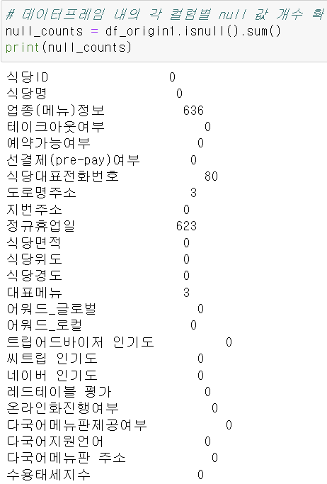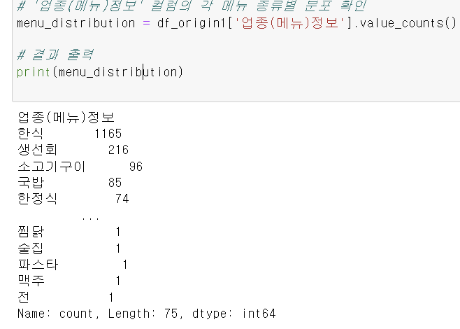 이 과정은 선별된 각 컬럼의 전처리 과정 중에 업종(메뉴)정보 때 실시할 예정