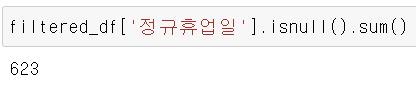 > 결과적으로 정규휴업일 null 식당 : 623 개