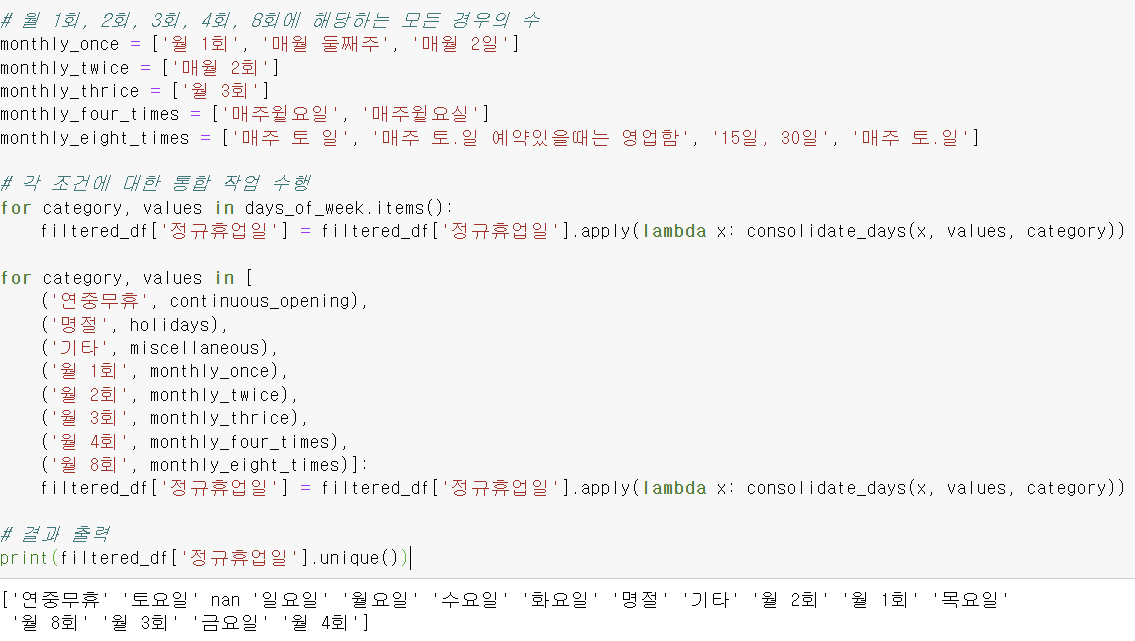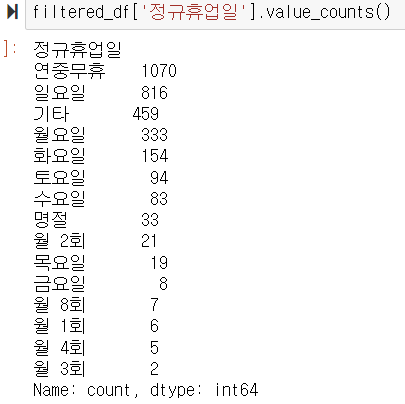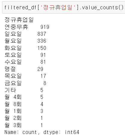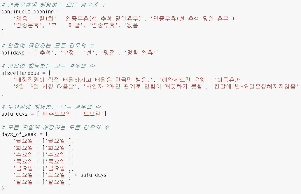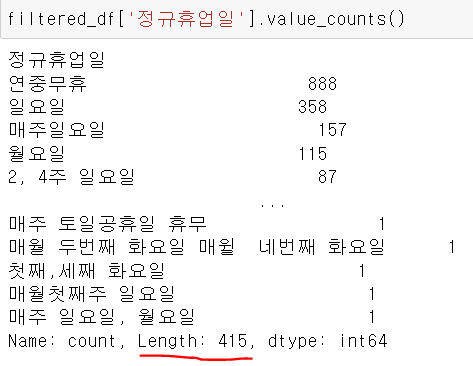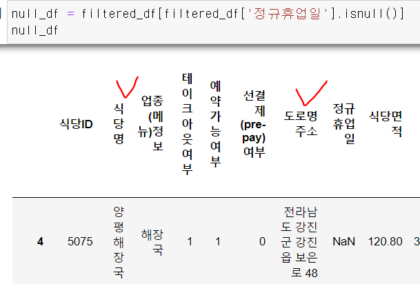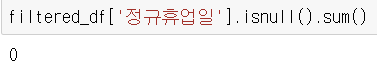 > 정규휴업일 null 식당 623 개를 노가다해서 값 채울 예정.